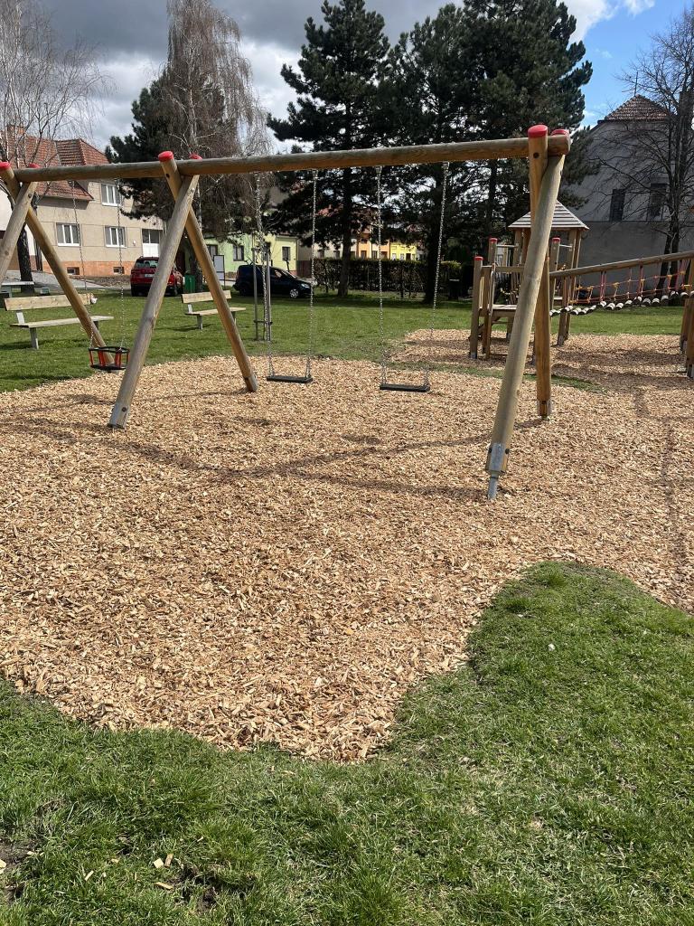 - Na dětském hřišti na Včelíně byl položen nový měkký povrch z kůry.