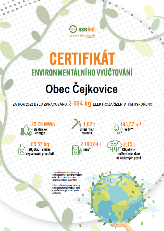 Elektrospotřebiče jsou součástí našeho každodenního života a jen těžko si jej bez nich dokážeme představit. Elektroodpad je tak v současné době jedním z nejrychleji rostoucích druhů odpadu. Pro zajištění sběru a recyklace již vysloužilých elektrozařízení si naše vybrala ke spolupráci kolektivní systém ASEKOL. Elektroodpad obsahuje řadu zdraví škodlivých materiálů a díky zajištění správné recyklace vysloužilých elektrozařízení přispíváme k ochraně životního prostředí. Recyklace navíc umožňuje opětovné materiálové využití a patří mezi základní principy cirkulární ekonomky. Míra opětovného materiálového využití je velmi vysoká a dle jednotlivých typů výrobků dosahuje až 95 %.
