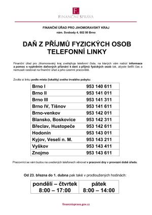TELEFONNÍ LINKY, VÝJEZDY DO OBCÍ FÚ JMK - PŘIZNÁNÍ K DANI Z PŘÍJMŮ